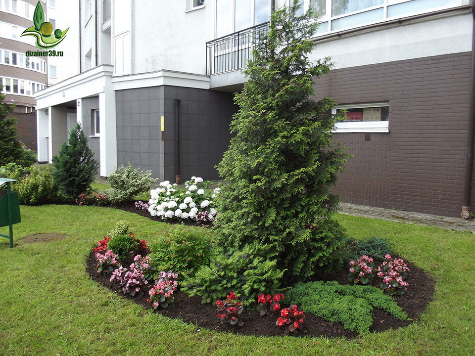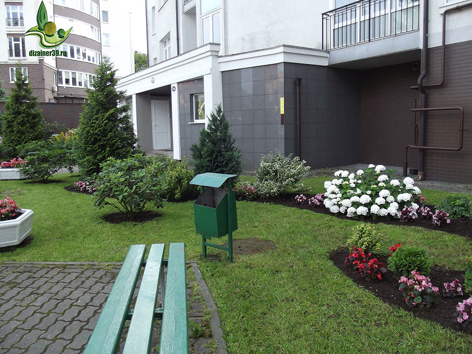 Разработка цветников у входа в парадные подъезды. Калининград - 2016 год.
